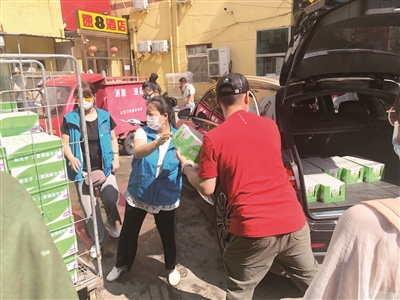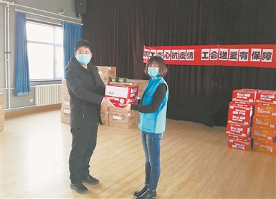 “你们辛苦了!”“一定要做好防护!”“保重身体!”王晓莉边不停地问候着,边把防疫慰问品送到职工志愿者的手中。一句句简单的话语寄托了她对所有奋战在一线的职工志愿者的真情实意。