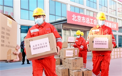 1月15日,北京市总工会工作人员走进北京建工集团地铁3号线01标、中铁十六局地铁17号线10标、中建二局中国爱乐乐团音乐厅等项目进行慰问,为在寒冷冬日下坚守生产一线的建设者们送上暖心慰问包。