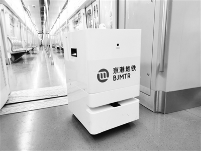 近日,京港地铁引入智能双氧水雾化消毒机器人,当要进行消毒时,操作人员只需预先设定需要清洁范围的平面图,一键开启后,机器人便可全自动运作。此外,操作人员也可以利用智能装置,在二十米范围内进行远距离遥控操作。本报记者 盛丽 摄影报道