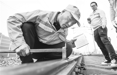 1月20日,钦州工务段防城港线路工区工长朱勋卫在检查钢轨裂痕。连日来,中国铁路南宁局集团有限公司钦州工务段的铁路工人们全力备战春运,白天集中力量全面“体检”线路,确保“带病设备”及时下道;夜晚加紧驳接道岔,推进防城港第三进港线建设,为2021年春运保驾护航。新华社发