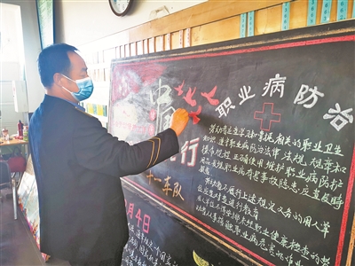 每次做板报之前,他们都会精心准备,根据不同主题更换素材。12月4日是宪法日,肖登明和同事们就做了一期这方面的黑板报,此外他们还做了职业病防治的内容,提醒同事们关注健康。“今天是宪法日啊。这样的宣传内容一看就懂,记得住!真心不错!”“版式好,内容好,字写得也好!”……每次只要板报一做好,总会引来不少的职工驻足。“没想到我平时写写画画还真用上了。还得到同事们的夸奖,这让我的信心更足了。”肖登明笑着说。
