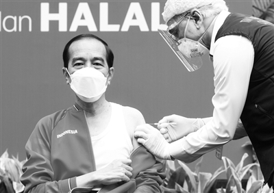 1月27日,印度尼西亚总统佐科在雅加达总统府接种了第二剂中国科兴公司的新冠疫苗。新华社发