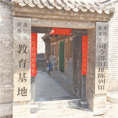沿着红线,来到一座古朴的大门前,只见门前悬挂着两块牌子,一块为“冀热察挺进军司令部旧址陈列馆”,另一块写着“北京市青少年教育基地”。原来这里就是抗战时期著名的冀热察挺进军司令部所在地。