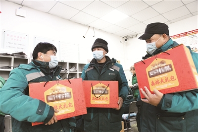 “天气虽冷,但我们的心里暖暖的,现在正是我们的生产旺季,来自工会的关怀让我们感觉干劲儿更足了。”2月2日上午,在新华大街邮政支局投递部内,刚刚忙完工作的职工赵冬平收到市服务工会送来的慰问品后由衷地说。当天,市服务工会一行为坚守一线的邮政职工们送来了坚果、水果等年货,表达了对户外工作者的关心。