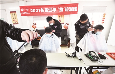 2月4日,正值小年,北京城建集团中国工艺美术馆项目部建筑工人胡猛和工友们收到了一份惊喜。北京市住房和城乡建设委员会、北京市总工会在该项目工地举办了“在京过年 ‘益’起温暖”公益行动,为工人们送上了温暖大礼包,送去了党和政府的关心与关爱。其中,每个大礼包含理发造型、合家欢家庭照及年货大礼包三个福袋。