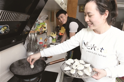 5年前,来自山东的小伙儿徐凯与河北姑娘牛影影组建了小家庭。今年是他们在老字号砂锅居工作的第10个年头,是店里的“老员工”。由于去年疫情影响,春节过后的休假就未能回家看望家人,今年春节小两口又积极响应政府“留京过年”的号召,再次推迟了返乡计划。