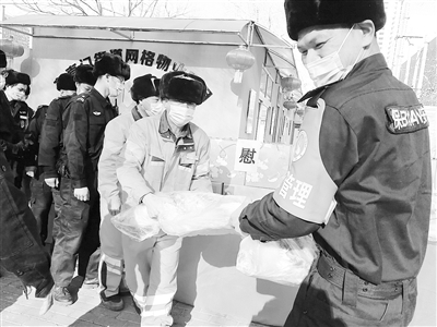 春节期间,东城区东直门街道总工会将猪肉、牛肉、饺子以及干果、手套、护膝等慰问品,送到街道网格物业项目,为200余名留京过年的户外工作者送上暖心祝福,感谢他们在疫情防控中做出的贡献。