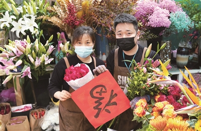 在丰台区玉泉营花乡花卉创意园经营鲜切花生意的袁晓威和妻子张群,一大早就忙活起来了,上花、摆花、浇花……夫妻二人,一人照顾生意,一人照顾鲜花。“这几天生意很不错,鲜花几乎当天就能卖完。”袁晓威告诉记者。此时,负责运送西城区新街口地区快件的快递小哥张金晓,也同样一大早就开始拣货了,他是河北邯郸人,这个春节,他是在岗位上过的,假日期间他已送达快件上千件。