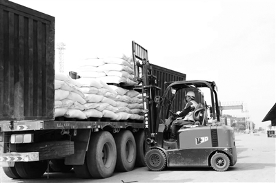 本报讯 (记者 彭程)2月23日,中国铁路北京局集团公司北京货运中心隆化铁路货场内叉车忙碌,传送带机器声轰鸣。装卸工们肩扛手提将一袋袋打包密封的化肥通过传送带源源不断地装进棚车。待装车完毕,这批化肥将发往东北地区。