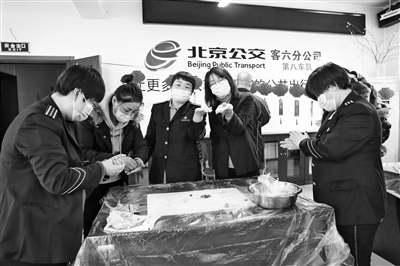 本报讯 (通讯员 杨珊珊)元宵节即将到来,昨天,北京公交集团客六分公司第八车队西胡林场站充满了欢声笑语,职工们一起做汤圆、猜灯谜。