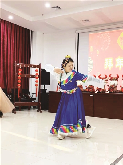 为了迎接牛年春节,丁洁提前一个多月,在网上下载了藏族舞《我的九寨》舞蹈视频,然后每天跟着视频一点点练习。“一天繁忙的工作之余,我放着悠扬的音乐,沉浸在舞蹈的世界里,虽然经常会出汗,练习一段时间也会觉得累,但心情却格外地好。舞蹈的美,需要你用心感受才能体会,那种愉悦,是其他很多活动都不能够替代的。”