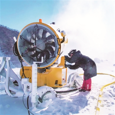 初冬,延庆小海坨山上气温逼近零下30℃,高山滑雪中心却热闹起来,几道身影操作着造雪机忙碌着。