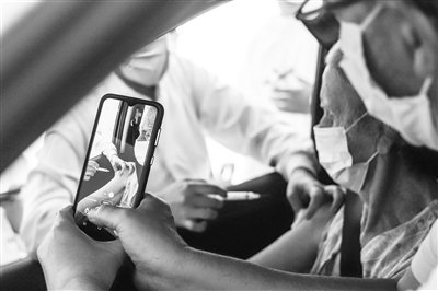 3月2日,巴西圣保罗市政府新启用了两个“不下车”新冠疫苗接种站,为80至84岁的老人接种新冠疫苗。图为医护人员在巴西圣保罗莫伦比体育场为一名老年人接种新冠疫苗。