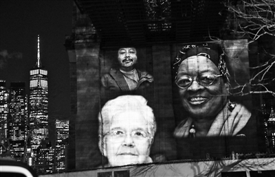 3月14日,新冠逝者的照片在纪念活动上被投射到美国纽约布鲁克林大桥上。当天,美国纽约市举行纪念活动,悼念该市超过3万名新冠逝者。 新华社发