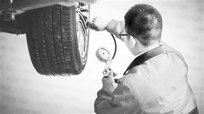 李凤琪提示,同时还要检查轮胎胎纹中有无夹杂异物。若有异物应判别是否损伤到轮胎,在确认未损伤到轮胎的前提下,应用工具将异物清除。最后还要对轮胎的气压进行一次检查,“可以参照在车门内侧附近、C柱附近或油箱盖内侧粘贴的轮胎气压标准参照表内的数据,对爱车的轮胎气压进行检查。对于轮胎气压达不到标准的,应及时查明原因,确认无泄漏后进行补压。如果经过了长途行驶或是准备进行长途自驾的车友,还应查看车辆的维修保养手册,确认一下车辆是否需要进行轮胎换位维护,确保轮胎花纹磨损程度和轮胎气压保持在正常工作范围。”