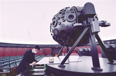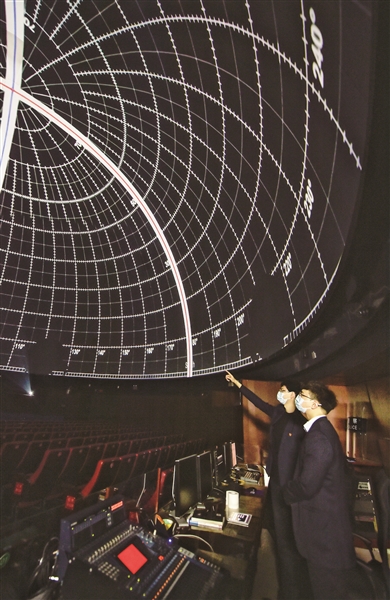 启动空调设备、打开服务器、开启投影机、确认运行状态……3月14日早上8点半,位于北京天文馆A馆中央的天象厅中,技术人员王晨阳正在进行日常的开场准备。根据今天的影片放映时间表,天象厅的第一场影片将在10点10分播放。看似充裕的准备时间,可要完成一系列工作也不是件容易的事。