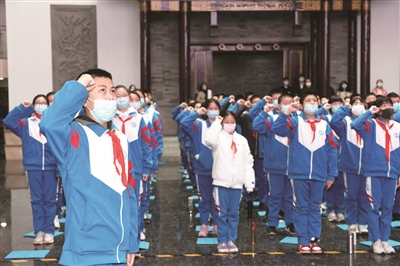 昨天,来自石景山区实验中学和首都师范大学附属苹果园中学分校的师生们走进中国人民抗日战争纪念馆,观看历史影像、聆听诗歌朗诵、学唱红色歌曲,开始了北京市中小学“四个一”活动春季开学的第一课。