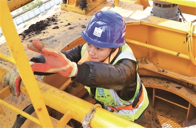她叫陆凤仙,是一名塔吊女司机,她身手敏捷,“一溜烟”爬上工地的2号塔吊,到达她的工作平台。陆凤仙的工作任务是为地面工人运输钢筋等物资。50米的塔吊高度,她只用1分多钟就爬到了控制室。不过,这位广西“女汉子”说,她的最快记录是4分钟爬上110米高的塔吊控制室。