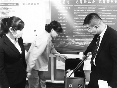 期间,北京分行特别成立了巡查小组,按一周一次的频率对各层的垃圾分类工作进行督查,对于投放失误的员工给予提醒和培训,以增强每一位员工的垃圾分类意识和能力。对于执行到位的部门给予奖励,对于成效较差的进行批评教育和再培训,不断改进垃圾分类工作,并将垃圾分类纳入规范化管理和考核工作当中。