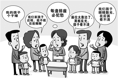 每逢新学期开学,不少班主任都为重新排座位而烦恼。担心孩子看不清黑板、难以得到老师关注、害怕与淘气不爱学习的孩子同桌……种种担忧背后,折射出家长对孩子学习成绩的过度焦虑。多位老师反映,孩子学习成绩更多取决于个人习惯,期盼家长能趋于理性,不迷信于“黄金座位”,而是协助老师、帮助孩子培养良好的学习习惯和能力。(3月24日 新华社)□朱慧卿