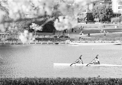 3月24日,市民在意大利首都罗马的一处水面上划船。罗马目前天气转暖,春意浓浓。由于新一波疫情影响,包括罗马在内的意大利多数地区正处于疫情防控最高等级的红色区域,实施“封城”措施。