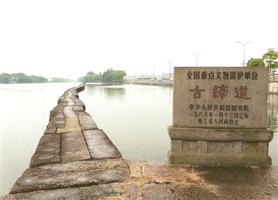 古时,为了方便纤夫背纤,拖行运河上的船只,顺着运河修筑了纤道。浙东运河古纤道是至今保存最集中、最完好的一段,在板桥到上谢桥之间7公里长的水道上。今天,这条古纤道也是全国重点文物保护单位。古纤道以青石条垒筑,傍岸而建或架水而出,石板平铺在纤道上,犹如长长的玉带,蜿蜒伸向远方,给浙东运河带来独特的风景,人们以“白玉长堤路,乌篷小画船”的诗句来形容古纤道的景色。