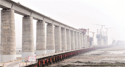 3月17日,新建福厦铁路湄洲湾跨海大桥泉港段正在加紧建设中。新建福(州)厦(门)铁路是中国首条跨海高铁,设计时速350公里,正线全长277公里,先后跨越湄洲湾、泉州湾、安海湾三个海湾。湄洲湾跨海大桥位于福建省莆田市城厢区和泉州市泉港区境内,全长14.7公里,主跨180米,设两座双柱式主塔,是国内首座跨海高铁矮塔斜拉桥。