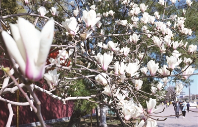 对于城里的市民来说,当御河边的杨柳垂下如烟如雾的万缕绿丝绦的时候,京城的春天就算来了。与之伴随的,是红墙边和城楼下盛开的玉兰花。有人说,玉兰是长安街的名片。十里长街上的玉兰花,其中不乏珍稀品种。对,这是这座大城老居民春天的标配。