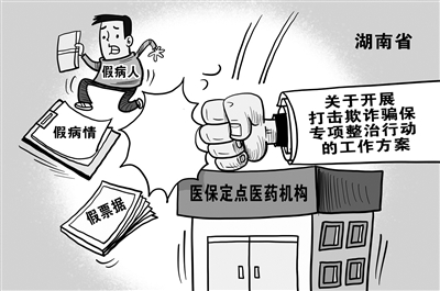 记者7日从湖南省医疗保障局获悉,湖南省医疗保障局、省公安厅、省卫生健康委员会近日联合发布《关于开展打击欺诈骗保专项整治行动的工作方案》,明确2021年4月—12月对湖南省各级医保定点医药机构开展专项整治,重点聚焦“假病人、假病情、假票据”等欺诈骗保问题,筑牢医保基金安全防线。(4月7日 新华社)□朱慧卿