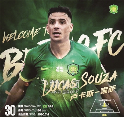 提起索萨,这肯定是国际足坛“响当当”的名字,因为叫索萨的实在是太多了。早年有曾在上海申花短暂效力的乌拉圭“灵猫”鲁本·索萨,这两年有曾在天津天海等球队执教过的保罗·索萨,保罗·索萨踢球时也是当年国际足坛最著名的后腰之一。在众多的“索萨”中,北京队引进的这个卢卡斯·索萨,名气不能算是响亮的。卢卡斯·索萨是巴西人,在场上司职后腰,偶尔可以客串中后卫。索萨出道于巴西巴拉纳俱乐部,效力过最大牌的球队是意甲帕尔玛。不过,在帕尔玛期间,他只在联赛和杯赛中出场过4次,只能算是意甲的一个过客。在大联赛踢球的经历,索萨还不如北京队另一位巴西中场费尔南多,费尔南多好歹曾经是桑普多利亚的主力球员。离开帕尔玛后,索萨曾在葡超混迹过两年。要说他最辉煌的经历是在塞浦路斯,他在塞浦路斯超级联赛两大强队利马索尔和希腊人竞技都有过效力,并且表现不俗。不要小看塞浦路斯联赛,他们的球队经常可以在欧联杯甚至欧冠爆冷,很多强队到了塞浦路斯球队的客场,都感觉束手束脚。在塞浦路斯踢了三四年球之后,去年索萨来到了中甲长春亚泰队。在长春队,索萨起初是绝对主力,在球队换帅后地位有所下降。