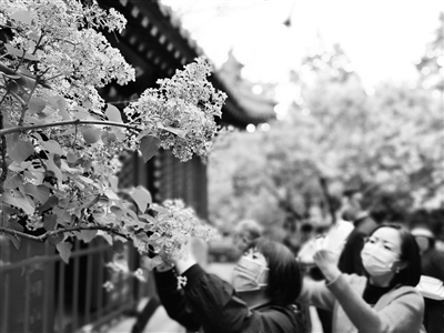 近日,法源寺丁香花进入盛花期,丁香诗会、丁香笔会、丁香茶会等一系列以丁香为主题的文化活动随之相继举行。“胜地花开香雪海”的美景使这里成了市民网红打卡地。