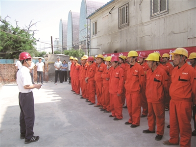 在进场施工前期,王启建组织工人开展业务培训,除了培训安全规则和工序规程外,还增加行为规范,包括了施工材料轻拿轻放、用手传递,避免摔到地上弄出声音等;在施工时,不能透过居民的窗户向内张望等内容。
