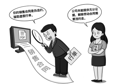 一审法院认为,公司主张云婉婷伪造销售合同,申请虚假行单,但经法院询问,公司对相关合同中的内容均不申请鉴定、亦未提交充分证据证明销售合同系伪造,故公司以云婉婷多次通过他人伪造文件、向公司申报虚假行单、给公司带来经济损失为由解除其劳动合同缺乏依据,应向其支付违法解除劳动合同赔偿金。相应地,公司以该理由扣除云婉婷的业绩亦无事实及法律依据。