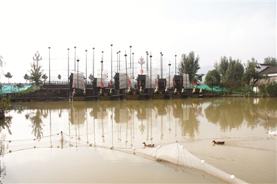 在诸葛古镇,雕塑景观有很多,这些景观紧扣主题,集中展示了三国时期的人物和事件。雕塑景观中最生动形象的当数“三顾茅庐”了,简陋古朴的柴门前,刘备身子前倾,虔诚地向柴门里的童子问话。他的身后,站着威风凛凛的关云长和张翼德,二人不满的神情与刘备的满脸谦恭,形成了强烈的反差,很符合原著中对人物的塑造。柴门内,小桥玲珑,茅庐古雅。游人至此,都要过小桥,进茅庐,现场体验一番。有喜欢刘备的,便和“刘备”合影;崇拜“关张”的,就和“关张”对视,这无不反映出人们对刘关张三人的崇敬之情。