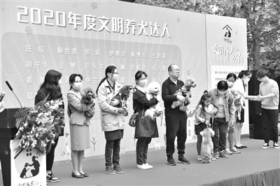 活动现场,文明养犬代表将科学养犬知识、驯犬技巧和经验分享。文明养犬达人还携爱犬献上表演。“与萌宠随行 与文明相伴”春季随行赛,现场组织50多组养犬家庭激烈角逐。犬只义诊、驯犬指导、领养宣讲、宠物摄影、宠物用品集市……比赛之余,犬主还可以携犬参与“萌宠嘉年华”。 现场还对全市范围内评选出的30位文明养犬达人、20个文明养犬示范社区和10个优秀文明养犬宣传员(宣传团体)进行了表彰。