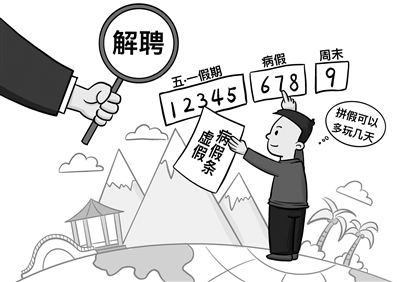 每逢“五一”等小长假的到来,就会有人采取“假期不够,病假来凑”等办法,将病假和“五一”假期拼凑成一个大长假,然后尽兴地玩。说实在话,有病请假无可厚非,把病假与其他假期拼在一起休息可以理解,用人单位遇到这种情况也通常会一概照准。