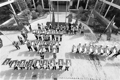4月28日,由北京市总工会主办的“首都劳动者微笑迎‘五一’暨创新实干勇争先劳动竞赛”,在北京建工集团地铁歇甲村车辆段项目部举行,参与北京市轨道交通建设的百名劳动者得到一份特别的礼物——“最美微笑照”,劳动者用他们自己的照片组成“五一”字样,迎接属于自己的节日。本报记者 邱勇 摄影报道