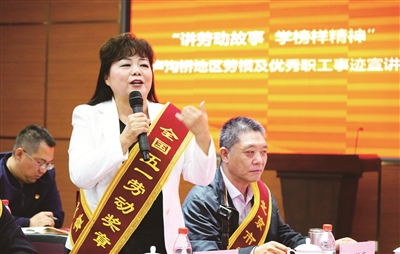 4月29日,丰台区卢沟桥乡地区总工会举办了“讲劳动故事 学榜样精神”劳模及优秀职工事迹宣讲活动。来自地区各条战线上的全国劳动模范、全国五一劳动奖章获得者、北京市劳动模范、首都劳动奖章获得者及基层建会企业优秀职工代表、基层工会主席齐聚一堂,听劳模讲劳动故事。本报记者 陈艺 摄影报道