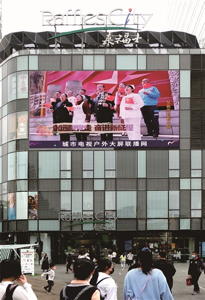 4月30日19时30分,由北京市总工会与北京广播电视台联合推出的“永远跟党走 奋进新征程——北京劳动者之歌”融媒体短视频在全城绽放,包括户外大屏、移动电视、地铁电视、楼宇电视等在内的全城大屏以及电视广播、移动端同步推出这一劳动节献礼之作。这部短视频用镜头记录了一线劳动者辛勤的工作身姿和甜美的笑容,记录了职工创新工作室领军人的工作场景,展现了首都劳动者听党话、跟党走的坚定意志和建功新时代、奋进新征程的昂扬姿态。