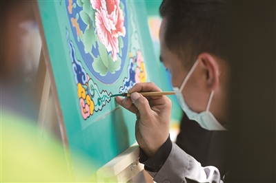 几位彩绘项目的选手屏气凝神在纸上画着。选手肖志强告诉记者,他已经画了30年。油漆彩画不仅仅是一项工作,更是一门艺术,看着完成的一幅幅画作,心中就会升起一股成就感。