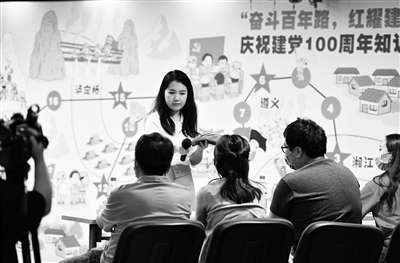 5月18日下午,建国门街道工委在建国门社区服务中心举办“奋斗百年路 红耀建国门”庆祝建党100周年知识竞赛决赛。决赛现场通过背景板还原了红军长征路线,6支队伍以答题的形式“重走长征路”,同时带领现场党员一起重温党史知识。本报记者 边磊 于佳 摄影报道