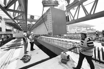 丰台特大桥近日全桥贯通,实现高架车场与丰台站站房无缝衔接,为京广高铁引入丰台站打下基础,自此,丰台站即将进入全线铺轨阶段。建成后的丰台站将承担京广高速铁路、京港台高速铁路以及丰沙、京原、京沪、京九普速线和市郊铁路等多条线路始发终到作业。