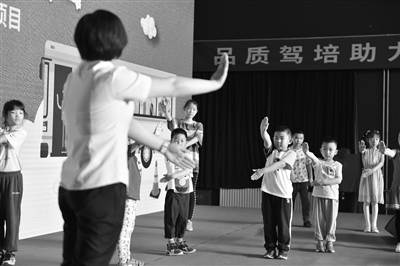 “同学们,大家跟我一起做。掌心向前,五指并拢、手臂伸直。”5月22日,在北京市机动车驾驶人培训行业协会主办,北京公交驾校等6家驾培企业联合承办的“品质驾培助力交通强国”系列活动中,来自“青少年交通安全训练营”的同学们通过学习交通警察手势操,了解交通安全知识。