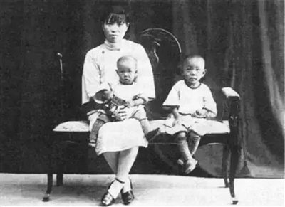(资料照片:母亲怀抱1岁的袁隆平,哥哥隆津坐在旁边)