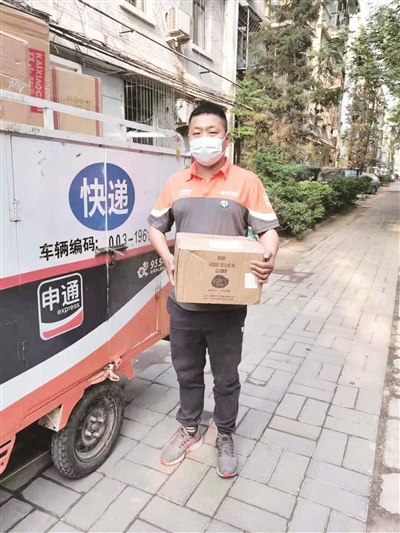 “您好,申通快递,有您的快递,您在家吗?”简短的沟通后,李亚平会根据顾客的要求送到指定的地点,一天,他通常要送200份左右的快递,有的时候会多点,有的时候会少点。发快递,一天最多的时候,他会发七八十份,少的时候也有40多份。中午12点、1点左右,他一般就把上午的快递送完了,然后回去吃饭。