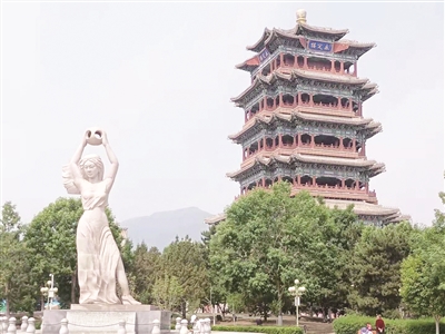 沿河岸继续向西而行,永定河畔的标志性建筑之一的永定楼近在眼前。