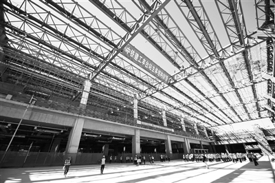 5月28日上午10时08分,随着最后一榀长19.9米、重6吨的次桁架吊装就位,北京丰台站历时2年多,提前33天实现主体结构全面封顶。以此为标志,北京丰台站将全面转入内外装修及机电安装阶段,计划年底具备开通条件。本报记者 彭程 摄影报道