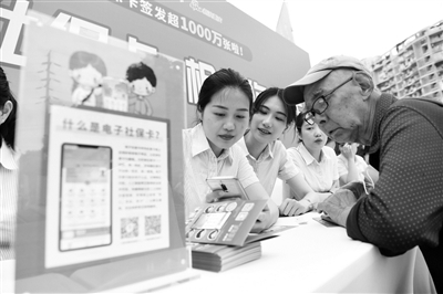 6月1日,在启动仪式现场一位读者在工作人员指导下开通电子社保卡。当日,由重庆市文化和旅游发展委员会、四川省文化和旅游厅携手策划的“川渝阅读‘一卡通’项目”在重庆图书馆启动。即日起,成渝两地市民凭个人电子社保卡、实体社保卡替代读者证,可无障碍地享受重庆图书馆、四川省图书馆、成都图书馆服务。据了解,“川渝阅读‘一卡通’项目”计划到2023年,分三年时间打通川渝地区86家公共图书馆图书资源网络,实现基于居民社保卡的图书通借通还服务,让两地公共图书馆成为川渝两地市民的城市书房。新华社发