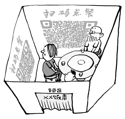 进入一家饭店,大大小小的二维码贴满了桌角和墙壁。消费者不需要菜单,也不用叫服务员,只需掏出手机扫码下单,就可以吃到热腾腾的美食,这种点餐新方式正日益普及。不过,看似简单快捷的“扫码点餐”问题也不少。不久前,黑龙江省消费者协会开展的一项“扫码消费问卷调查活动”显示,八成消费者在扫码点餐时遭遇强制关注,引发了消费者不满。(6月8日 《人民日报海外版》)□王铎