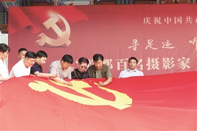 活动在《没有共产党就没有新中国》的歌声中拉开帷幕,随后,与会领导和摄影家代表一起上台为党旗收针。史家营乡政府相关负责人表示,史家营乡曾是平西革命根据地,村村有抗战烈士、村村有英雄故事、村村有革命遗址。乡党委、政府把红色文化的挖掘和传承作为一项重大的责任和历史使命,积极打造史家营红色文化名片。活动结束后,百名摄影家拿起手中的相机,聚焦红色山乡,踏寻“红色遗址、红色人物、红色故事”。邱勇 摄